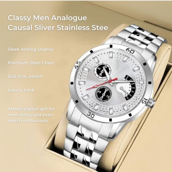 Classy Men Analog Silver Stainless Steel Watch – Elegance Meets Style
